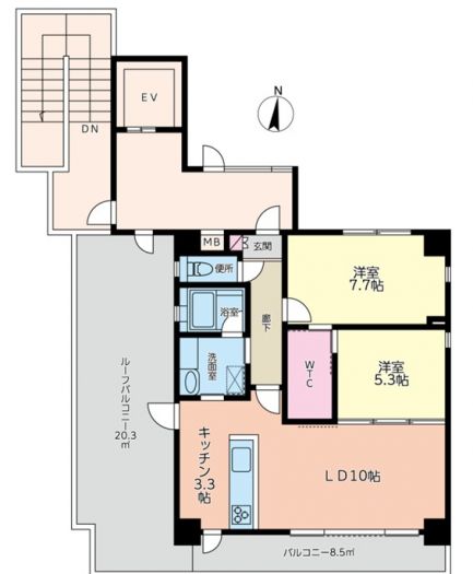 | 間取り | 2LDK (洋7.7洋5.3LDK13.3WTC2) |