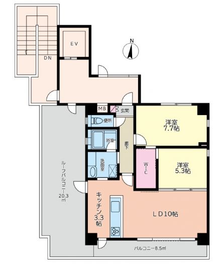 間取り | 2LDK (洋7.7洋5.3LDK13.3) |